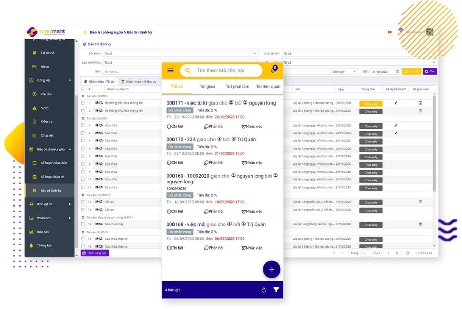 Ngoài ra, phần mềm còn hỗ trợ quản lý công việc bảo trì theo thời gian thực, giúp phân công, theo dõi và đánh giá hiệu quả công việc một cách minh bạch.