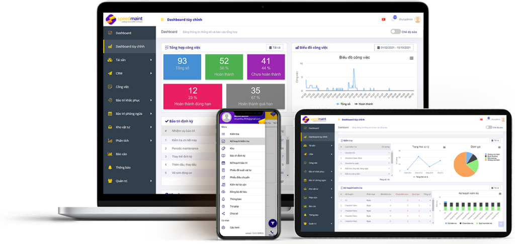 SpeedMaint cung cấp báo cáo và phân tích dữ liệu trực quan về:
